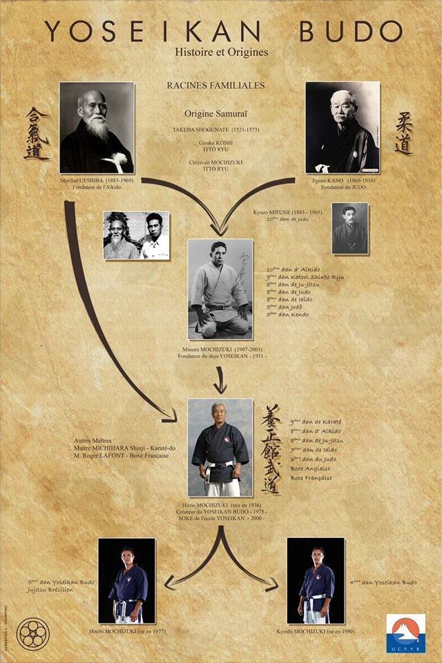 Le Yoseikan Budo trouve ses racines dans l’histoire des arts martiaux japonais traditionnels, mais c’est un art martial moderne qui a été développé au milieu du XXe siècle. Il a été fondé par Hiroo Mochizuki, fils du célèbre maître Minoru Mochizuki, qui a lui-même été formé par les grands maîtres du Judo, de l’Aikido, et du Karaté. Hiroo Mochizuki, fort de ses connaissances dans ces disciplines, a voulu créer une approche unifiée des arts martiaux en intégrant diverses techniques de combat dans un système cohérent.